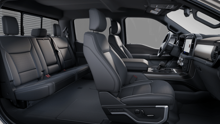 Lariat Black Appearance Package: Black Grille; ActiveX Trimmed Bucket Seats; Black Exterior Badging; Gray Box Side Decal; 6" Extended Running Boards; 20" Gloss Black Painted Aluminum Wheels; Body-Color Front and Rear Bumpers; Body-Color Skull Caps and Door Handles; Black Taillamp Bezels; Dual Exhaust with Black Tips; Matte Black Tailgate F-150 Decal; Dark Interior Appliques; Black Grille; ActiveX Trimmed Bucket Seats; Black Exterior Badging; Gray Box Side Decal; 6" Black Running Boards; 20" Gloss Black Painted Aluminum Wheels; Body-Color Front and Rear Bumpers; Body-Color Skull Caps and Door Handles; Black Taillamp Bezels; Dual Exhaust with Black Tips; Matte Black Tailgate F-150 Decal; Dark Interior Appliques; Black Grille; ActiveX Trimmed Bucket Seats; Black Exterior Badging; Gray Box Side Decal; 18" Gloss Black Wheels; Body-Color Front and Rear Bumpers; Body-Color Skull Caps and Door Handles; Black Taillamp Bezels; Matte Black Tailgate F-150 Decal; Dark Interior Appliques. Equipment Group 501A Mid: 5.0L V8 Engine; Power-Sliding Rear Window; Electronic 10-Speed Automatic Transmission; 7. 100 lbs Payload Package GVWR; ActiveX Trimmed Bucket Seats; 3.31 Axle Ratio; 6" Angular Bright Anodized Step Bar; B&O Sound System by Bang and Olufsen; Illuminated Driver and Passenger Visors; 20" Chrome-Like PVD Wheels; 275/60R20 All-Terrain Tires. Tow/haul Package: Integrated Trailer Brake Controller; Electronic Locking with 3.73 Axle Ratio; Integrated Trailer Brake Controller; Electronic Locking with 3.55 Axle Ratio; Integrated Trailer Brake Controller; Electronic Locking with 3.73 Axle Ratio. 6" Angular Bright Anodized Step Bar. Electronic Locking with 3.73 Axle Ratio. BlueCruise Equipped (1year Plan). Power Telescoping/glass/folding Trailer Tow Mirrors. **Equipment listed is based on original vehicle build and subject to change. Please confirm the accuracy of the included equipment by calling the dealer prior to purchase.**