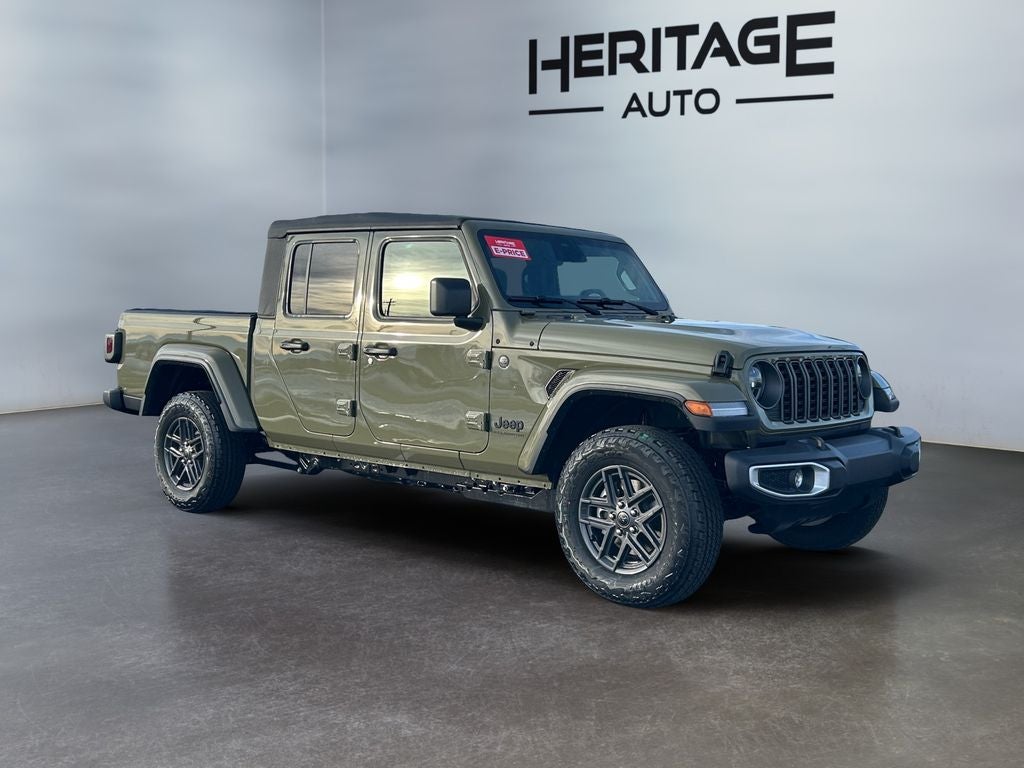 This Jeep Gladiator features a hands-free Bluetooth® phone system. An off-road package is equipped on the Jeep Gladiator. This vehicle's Forward Collision Warning feature alerts drivers to potential front-end collisions. Apple CarPlay: Seamless smartphone integration for this 2026 Jeep Gladiator - stay connected and entertained on the go! The vehicle offers Android Auto for seamless smartphone integration. This 1/2 ton pickup is pure luxury with a heated steering wheel. This Jeep Gladiator offers Automatic Climate Control for personalized comfort. Protect the Jeep Gladiator from unwanted accidents with a cutting edge backup camera system. Never get into a cold vehicle again with the remote start feature on this vehicle. This Jeep Gladiator shines with a refined green finish. When you encounter slick or muddy roads, you can engage the four wheel drive on it and drive with confidence. This vehicle has a V6, 3.6L high output engine. Set the temperature exactly where you are most comfortable in the vehicle. The fan speed and temperature will automatically adjust to maintain your preferred zone climate.