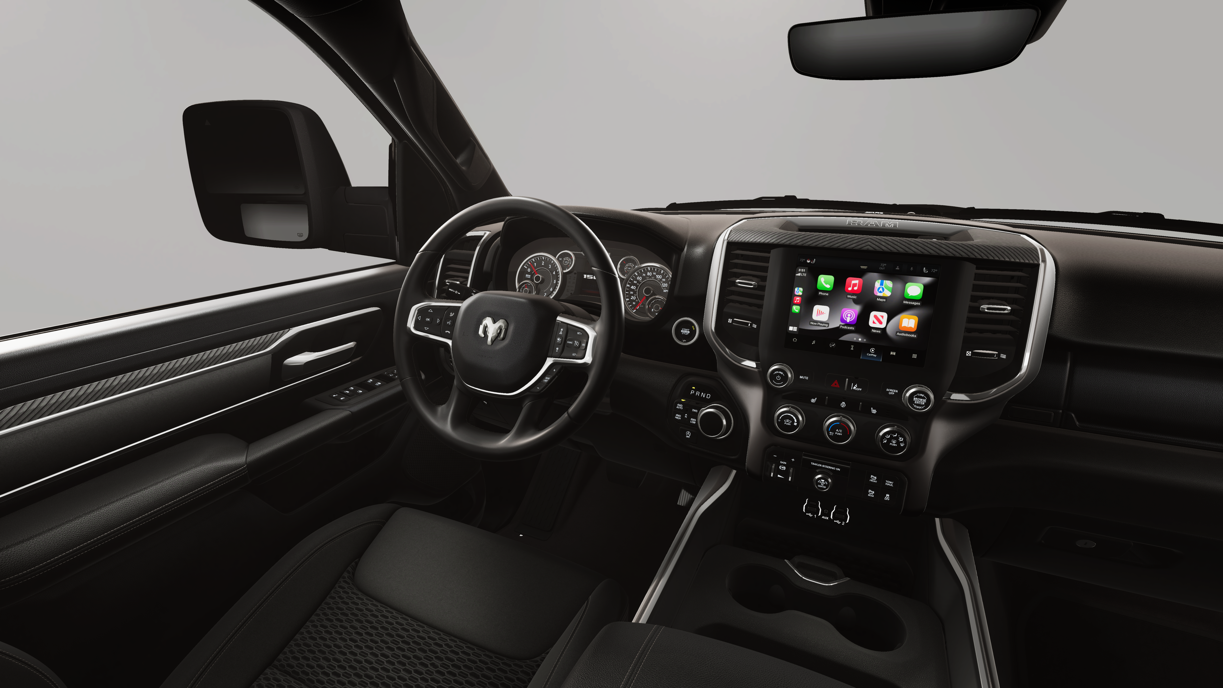 Quick Order Package 21Z Big Horn. Big Horn Level 1 Equipment Group: SiriusXM Radio Service; Rear Window Defroster; Rear View Auto Dim Mirror; Power Adjustable Pedals; Leather Wrapped Steering Wheel; Rear Power Sliding Window; Rear Dome with On/off Switch Lamp; Glove Box Lamp; Auto Power-Folding Mirrors; Exterior Mirrors with Heating Element; Auto Dim Exterior Driver Mirror; Heated Front Seats; Heated Steering Wheel; Black Exterior Mirrors; Black Premium Power Mirrors; SiriusXM Satellite Radio; 400W Inverter; Deluxe Cloth Bucket Seats; Exterior Mirrors with Supplemental Signals; Steering Wheel Mounted Audio Controls; Exterior Mirrors Courtesy Lamps; Body Color Fender Flares; 115V Auxiliary Power Outlet; Universal Garage Door Opener; 2nd Row in Floor Storage Bins; Convex Wide-Angle Exterior Mirror Insert; Sun Visors with Illuminated Vanity Mirrors. Sport Appearance Package: Grille Surround 1 Body Color Texture 1 Black; Body Color Tailgate Handle; Black Interior Accents; Body Color Front Bumper; Body Color Door Handles; RAM Grille Badge - Chrome; Body Color Rear Bumper with Step Pads; 275/55R20 OWL All Season Tires; Grille Surround 1 Body Color Texture 1 Black; Body Color Tailgate Handle; Black Interior Accents; Body Color Front Bumper; Body Color Door Handles; RAM Grille Badge - Chrome; Body Color Rear Bumper with Step Pads. Protection Group: Steering Gear Skid Plate; Tow Hooks; Transfer Case Skid Plate; Fuel Tank Skid Plate. Trailer Tow Group: Trailer Light Check; Trailer Brake Control; Accent Color Tailgate Handle; Trailer Reverse Steering Control; Trailer Tire Pressure Monitoring System; Black Trailer Tow Power Mirrors; Trailer Brake Control; Accent Color Tailgate Handle; Trailer Reverse Steering Control; Trailer Tire Pressure Monitoring System; Black Trailer Tow Power Mirrors. 9 Amplified Speakers with Subwoofer. Trailer Brake Control. Silver Zynith. Rear Underseat Compartment Storage. Black Trailer Tow Power Mirrors. **Equipment listed is based on original vehicle build and subject to change. Please confirm the accuracy of the included equipment by calling the dealer prior to purchase.**