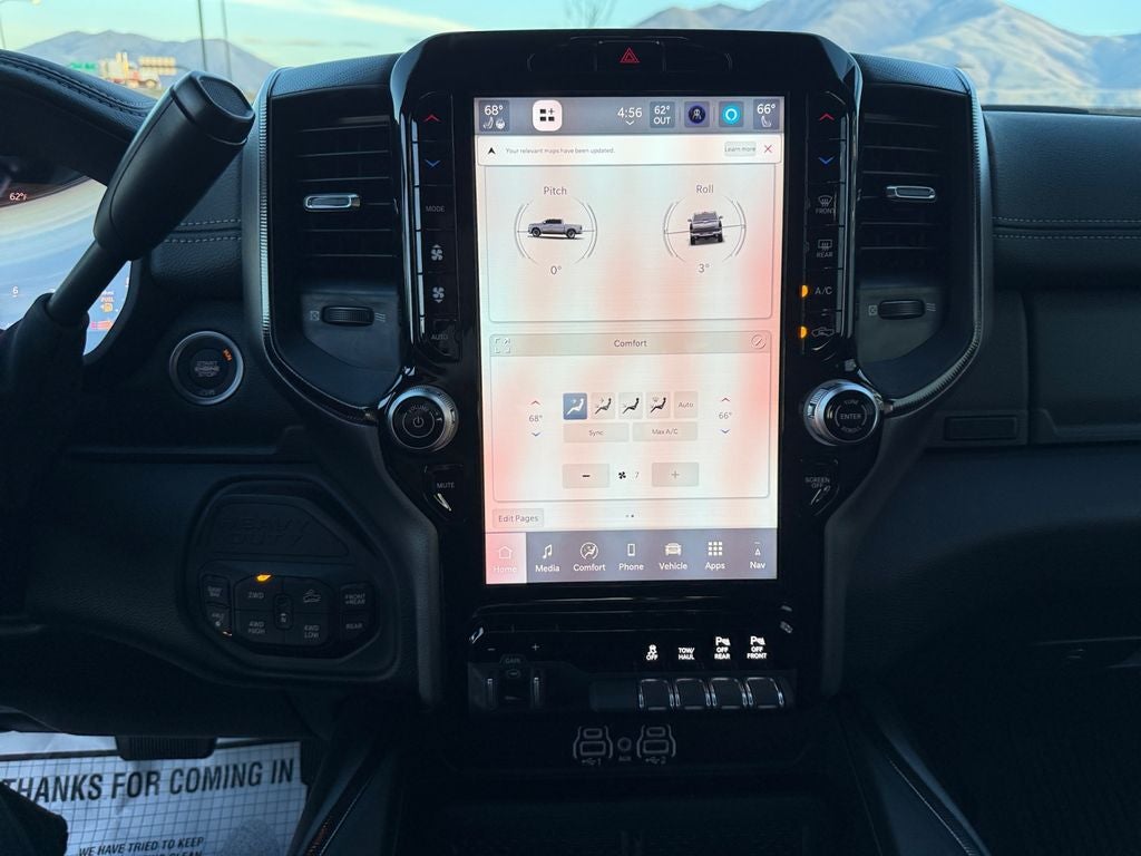 Bed Utility Group: MOPAR Spray in Bedliner; MOPAR Deployable Bed Step; LED Bed Lighting. Quick Order Package 2UP Power Wagon: Power Wagon Instrument Panel Spec Plate; RAM Articulink Suspension; 17" X 8.0" Black Painted Aluminum Wheels; 17" Steel Spare Wheel; Front Disconnecting Stabilizer Bar; Instrument Cluster Theme 5 - Power Wagon; Tru-Lok Front and Rear Axles; Goodyear Brand Tires; 4.10 Axle Ratio; Black Wheel Center Hub; Raised Ride Height; LT285/70R17D OWL AT Tires. Power Wagon Level 1 Equipment Group: Rain Sensitive Windshield Wipers; Power Adjustable Pedals with Memory; Body Color Door Handles; Auto Power-Folding Mirrors; Overhead LED Lamps; Exterior Mirrors with Heating Element; Auto Dim Exterior Mirror; MOPAR Rock Rails with Step Pad; Mirror Running Lights; Black Exterior Mirrors; Power-Adjustable Convex Aux Mirrors; Premium Overhead Console; Forward and Reverse Utility Lights; 9 Alpine Speakers with Subwoofer; Power Heated Fold Telescopic Mirrors with Memory; Exterior Mirrors with Supplemental Signals; Front Electric Winch; Sport Performance Hood; Exterior Mirrors Courtesy Lamps; Leather Trimmed Bucket Seats; Front Door Locks 2-Door Passive Entry; LED Interior Lighting; Auto High Beam Headlamp Control; LED Dome Lamp with On/off Switch; Universal Garage Door Opener; Exterior Mirrors with Memory; Power Adjust Mirrors; Power Telescoping Mirrors; MOPAR Front and Rear Rubber Floor Mats; Auto Dim Exterior Passenger Mirror; Sun Visors with Illuminated Vanity Mirrors; Auto Adjust in Reverse Exterior Mirrors. Front Electric Winch. MOPAR Rock Rails with Step Pad. Sport Performance Hood. Center Stop Lamp with Cargo View Camera. Diamond Black Crystal PC. MOPAR Front and Rear Rubber Floor Mats. **Equipment listed is based on original vehicle build and subject to change. Please confirm the accuracy of the included equipment by calling the dealer prior to purchase.**