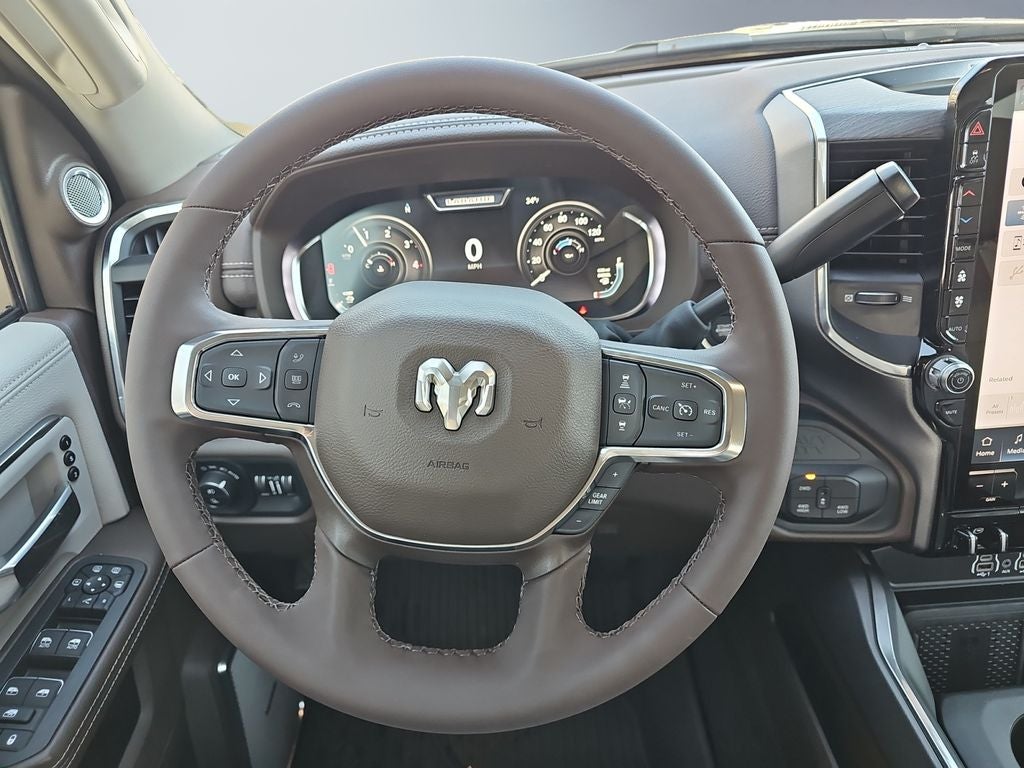 Enjoy your music even more with the premium sound system in this 1 ton pickup. The Ram 3500 offers Android Auto for seamless smartphone integration. See what's behind you with the back up camera on this 1 ton pickup. Keep your hands warm all winter with a heated steering wheel in the vehicle . It is equipped with the latest generation of XM/Sirius Radio. The installed navigation system will keep you on the right path. It features a hands-free Bluetooth® phone system. An off-road package is installed on this vehicle so you are ready for your four-wheeling best. Never get into a cold vehicle again with the remote start feature on this vehicle. The leather seats in this model are a must for buyers looking for comfort, durability, and style. This 1 ton pickup has automated speed control that adjusts to maintain a safe following distance, enhancing highway driving convenience.