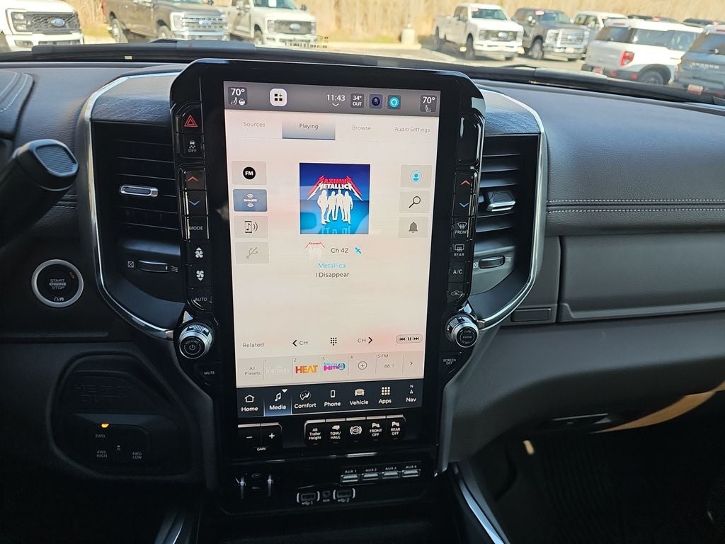 Bed Convenience Group: MOPAR Spray in Bedliner; LED Bed Lighting. Quick Order Package 24H Laramie. Laramie Level 2 Equipment Group: Google Android Auto; SiriusXM Radio Service; Rain Sensitive Windshield Wipers; Power Adjustable Pedals with Memory; For Details Visit DriveUconnect.com; For More Info. Call 800-643-2112; Integrated Voice Command with Bluetooth®; Connectivity - US/Canada; Emergency Vehicle Alert System (EVAS); Auto Power-Folding Mirrors; GPS Navigation; 4G LTE Wi-Fi Hot Spot; GPS Antenna Input; Exterior Mirrors with Heating Element; Auto Dimming Exterior Mirrors; SiriusXM with 360L; Global Telematics Box Module; Connected Travel and Traffic Services; Mirror Running Lights; Foam Bottle Insert (door Trim Panel); Alexa Built-In; Apple CarPlay; Power-Adjustable Convex Aux Mirrors; Off-Road Information Pages; Forward and Reverse Utility Lights; Selectable Tire Fill Alert; Trailer Tow Pages; Disassociated Touchscreen Display; Leather Trimmed Bucket Seats; HD Radio; 14.4" Touchscreen Display; Power Heat Fold Memory Telescopic Mirrors; Exterior Mirrors with Supplemental Signals; Exterior Mirrors Courtesy Lamps; Uconnect 5 Nav with 14.4" Display; Remote Tailgate Release; 17 Speaker Harman/kardon Premium Sound; Auto High Beam Headlamp Control; Chrome Exterior Mirrors; Exterior Mirrors with Memory; Power Adjust Mirrors; 2nd Row in Floor Storage Bins; Power Telescoping Mirrors; Auto Dimming Exterior Passenger Mirror; Auto Adjust in Reverse Exterior Mirrors. Towing Technology Group: Center Stop Lamp with Cargo View Camera; Surround View Camera System; Trailer Tire Pressure Monitoring System; Trailer Reverse Guidance. Dual Rear Wheels: Clearance Lamps; LT235/80R17E BSW All Season Tires; 17" Steel Spare Wheel; Box and Rear Fender Clearance Lamps; Center Hub; 6000# Front Axle with Hub Extension; 17" X 6.0" Polished Aluminum Wheels; Nexen Brand Tires; 14. 000 Lb GVWR. Auto Level Rear Air Suspension. 5th Wheel/gooseneck Towing Prep Group. Leather Trimmed Bucket Seats. Center Stop Lamp with Cargo View Camera. MyFlexCare Service Diesel. 50 Gallon Fuel Tank. Granite Crystal Met CC. Instrument Panel Mounted Auxiliary Switches. MOPAR Front and Rear Rubber Floor Mats. Clearance Lamps. **Equipment listed is based on original vehicle build and subject to change. Please confirm the accuracy of the included equipment by calling the dealer prior to purchase.**