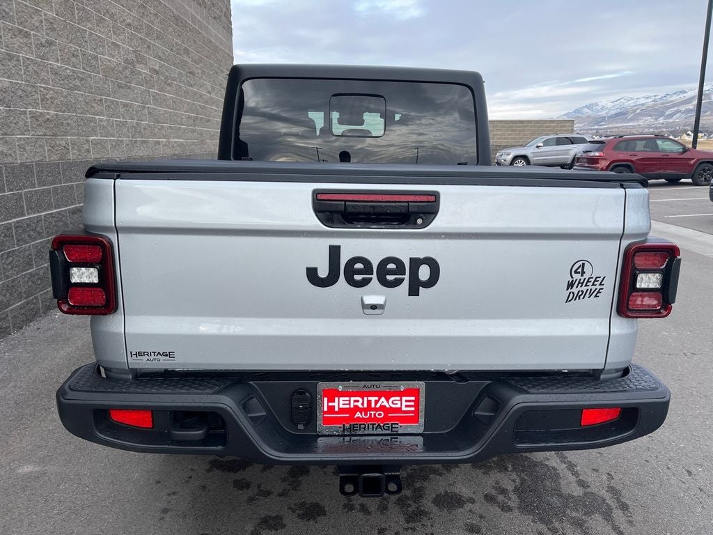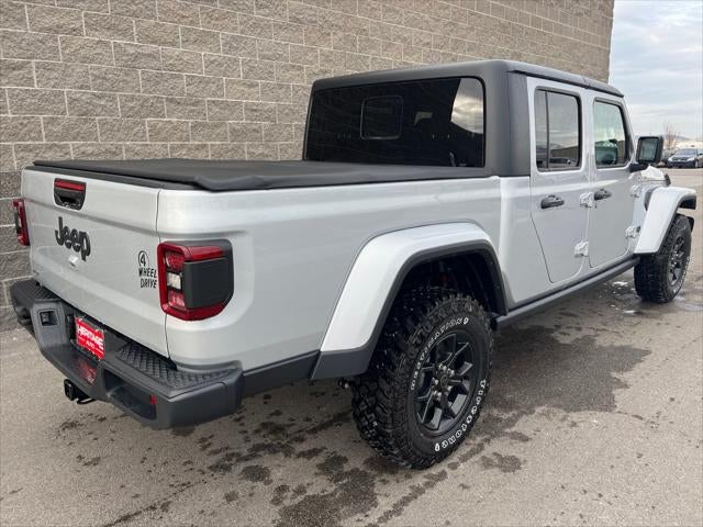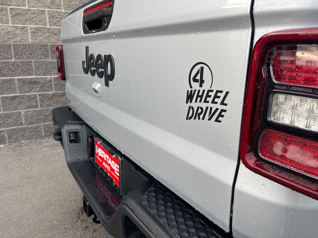 Quick Order Package 24W Willys: Speed Sensitive Power Locks; LED Taillamps; Protection Sill Rails; 4-Wheel Drive Decal; Black Grille; MOPAR All-Weather Slush Mats; LT255/75R17C OWL On/off Road Tires; 2-Piece Body Color Fender Flares; Front 1-Touch Down Power Windows; Front Heavy Duty Red Accent Shock Absorbers; Daytime Running Lamps LED Accents; Front LED Fog Lamps; LED Premium Reflector Headlamps; E-Locker Rear Axle; Trailer Hitch Zoom; Class IV Receiver Hitch; Security Alarm; Mold in Color Bumper with Gloss Black; Advanced Brake Assist; Willy's Suspension; Heavy Duty Engine Cooling; Automatic Headlamps; Air Conditioning with Auto Temp Control; Deep Tint Sunscreen Windows; Off-Road Plus Mode; 17" X 7.5" Painted Black Wheels; 240 Amp Alternator; Willys Hood Decal; Full Speed Forward Collision Warning Plus; Rear Heavy Duty Red Accent Shock Absorbers; Front Door Locks 2-Door Passive Entry; 97 MPH Vehicle Max Speed Calibration; Cluster 7.0" TFT Color Display; Power Heated Mirrors; Enhanced Adaptive Cruise Control; Auxiliary Switches; Premium Wrapped Steering Wheel; Power Tailgate Lock; Sun Visors with Illuminated Vanity Mirrors; Remote Keyless Entry. MOPAR Soft Tri-Fold Tonneau Cover. Silver Zynith Clearcoat. **Equipment listed is based on original vehicle build and subject to change. Please confirm the accuracy of the included equipment by calling the dealer prior to purchase.**