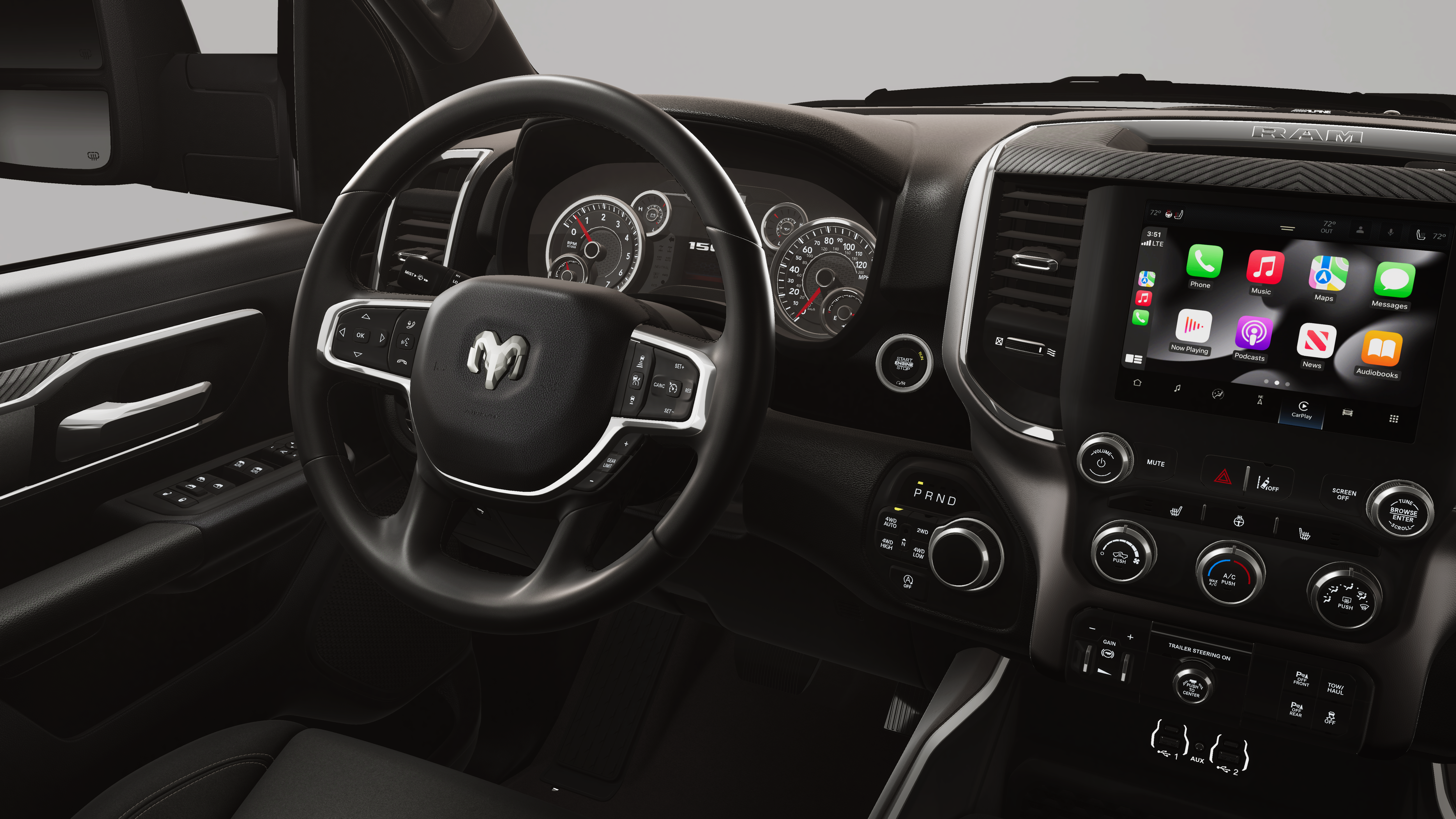The rear parking assist technology on the Ram 1500 will put you at ease when reversing. The system alerts you as you get closer to an obstruction. It offers Apple CarPlay for seamless connectivity. Start the Ram 1500 from inside with remote start. This model features a hands-free Bluetooth® phone system. See what's behind you with the back up camera on this model. This model has automated speed control that adjusts to maintain a safe following distance, enhancing highway driving convenience. The satellite radio system in this Ram 1500 gives you access to hundreds of nation-wide radio stations with a clear digital signal. This model is pure luxury with a heated steering wheel. This 1/2 ton pickup offers Android Auto for seamless smartphone integration. The vehicle's Forward Collision Warning feature alerts drivers to potential front-end collisions. This Ram 1500 is equipped with the latest generation of XM/Sirius Radio. Greater towing safety becomes standard with the installed trailer brake.