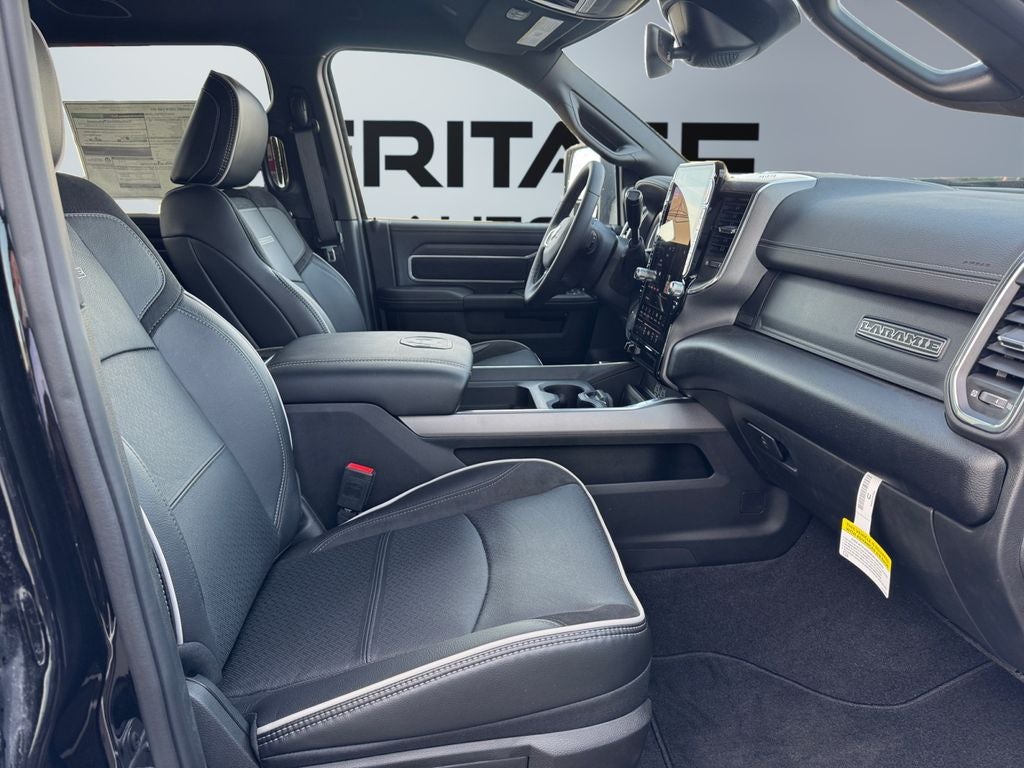 Laramie Level 2 Equipment Group: Google Android Auto; SiriusXM Radio Service; Rain Sensitive Windshield Wipers; Power Adjustable Pedals with Memory; Integrated Voice Command with Bluetooth®; Connectivity - US/Canada; Emergency Vehicle Alert System (EVAS); Auto Power-Folding Mirrors; GPS Navigation; 4G LTE Wi-Fi Hot Spot; GPS Antenna Input; Exterior Mirrors with Heating Element; Auto Dim Exterior Mirror; SiriusXM with 360L; Anti-Spin Differential Rear Axle; Global Telematics Box Module; Connected Travel and Traffic Services; Mirror Running Lights; Foam Bottle Insert (door Trim Panel); Alexa Built-In; Apple CarPlay; Power Adjustable Convex Aux Mirrors; Off-Road Info Pages; Forward and Reverse Utility Lights; Selectable Tire Fill Alert; Trailer Tow Pages; Disassociated Touchscreen Display; Leather Trimmed Bucket Seats; HD Radio; 14.4" Touchscreen Display; Power Heated Fold Telescopic Mirrors with Memory; Exterior Mirrors with Supplemental Signals; Exterior Mirrors Courtesy Lamps; Uconnect 5 Nav with 14.4" Display; Remote Tailgate Release; 17 Speaker Harman/kardon Premium Sound; Auto High Beam Headlamp Control; Chrome Exterior Mirrors; Exterior Mirrors with Memory; Power Adjust Mirrors; 2nd Row in Floor Storage Bins; Power Telescoping Mirrors; Auto Dim Exterior Passenger Mirror; Auto Adjust in Reverse Exterior Mirrors. Quick Order Package 24H Laramie. Safety Group: Active Lane Management System; Auto High Beam Headlamp Control; Rain Sensitive Windshield Wipers; Drowsy Driver Detection; Traffic Sign Recognition; Adaptive Steering System. Chrome Bumper Package: Bright Rear Bumper; Bright Front Bumper. Power Deployable Running Boards. Leather Trimmed Bucket Seats. Diamond Black Crystal PC. Transfer Case Skid Plate Shield. **Equipment listed is based on original vehicle build and subject to change. Please confirm the accuracy of the included equipment by calling the dealer prior to purchase.**
