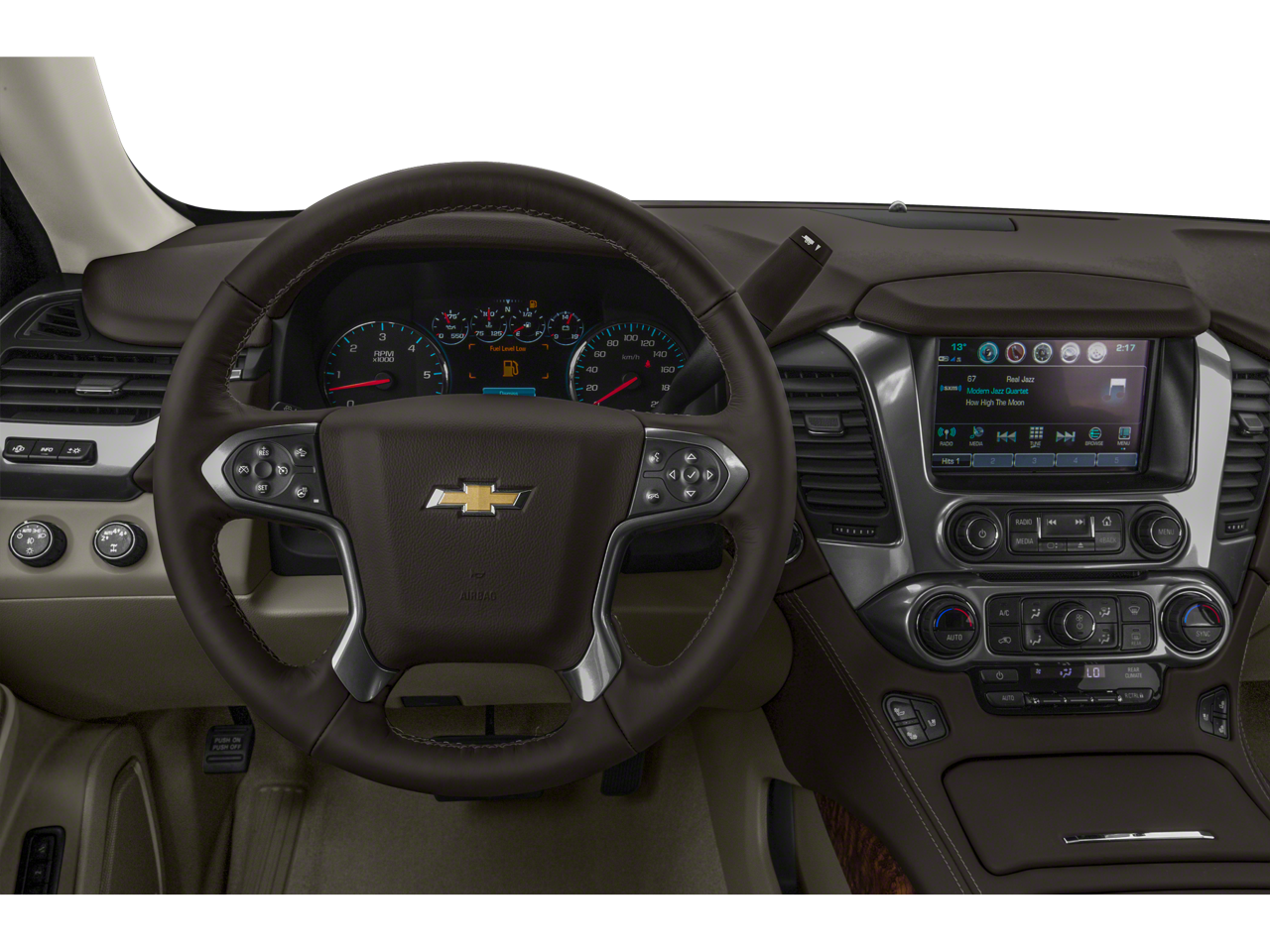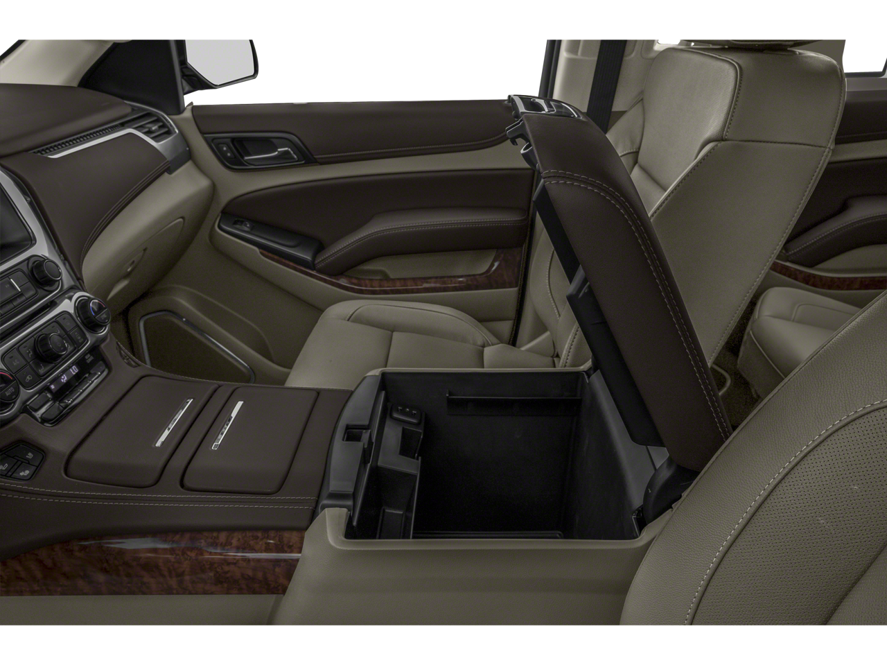 Sun. Entertainment and Destinations Package: AM/FM Stereo with Navigation; Rear Seat Entertainment System; Power Tilt-Sliding Sunroof with Express-Open/close. Premier Plus Edition: Enhanced Driver Information Center; 22" 6-Spoke Split Chrome Wheels; Power-Retractable Assist Steps; 2-Speed Active Electronic Autotrac Transfer Case; 3.23 Rear Axle Ratio; 170 Amp Alternator; 6.2L V8 EcoTec3 Engine; Integrated Trailer Brake Controller; High-Capacity Air Cleaner; AM/FM Stereo with Navigation; Collapsible Cargo Area Organizer; Rear Seat Entertainment System; P285/45R22 AS BW Tires; Power Tilt-Sliding Sunroof with Express-Open/close; Black Roof Rack Cross Bars; Power Release 2nd Row Bucket Seats; Electronic 10-Speed Automatic Transmission with Overdrive; Polished Exhaust Tip. Preferred Equipment Group 1LZ: Memory Settings; Heated Leather Wrapped Steering Wheel; 20" X 9" Polished-Aluminum Wheels; Perforated Leather-Appointed Seat Trim; Remote Vehicle Start; 3rd Row 60/40 Power Fold Split-Bench; Front and Rear Park Assist; Floor Console with Storage Area; 6-Way Power Front Passenger Seat Adjuster; AM/FM Stereo with