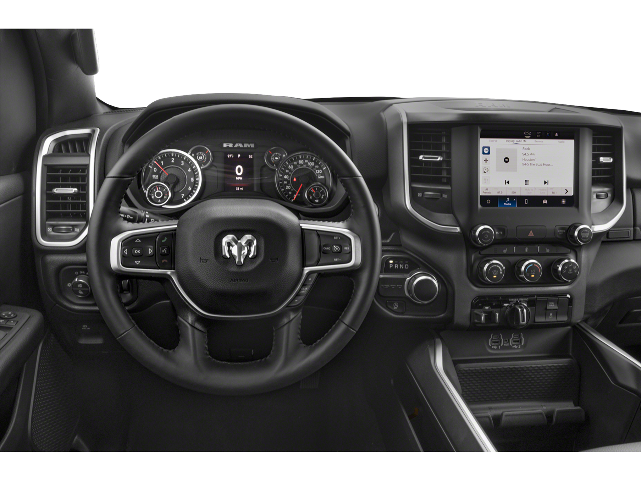 Quick Order Package 27H Laramie. Laramie Level B Equipment Group: Google Android Auto; SiriusXM Radio Service; USB Host Flip; Rear Window Defroster; Blind Spot and Cross Path Detection; Rain Sensitive Windshield Wipers; ParkSense Front/rear Park Assist with Stop; Power Adjustable Pedals with Memory; For Details. Visit DriveUconnect.com; For More Info. Call 800-643-2112; Rear Power Sliding Window; Integrated Voice Command with Bluetooth®; Connectivity - US/Canada; GPS Navigation; 4G LTE Wi-Fi Hot Spot; Rear Underseat Compartment Storage; SiriusXM with 360L; Global Telematics Box Module; Connected Travel and Traffic Services; Front LED Fog Lamps; Heated Second Row Seats; LED Reflector Headlamps; Foam Bottle Insert (door Trim Panel); Apple CarPlay; HD Radio; Uconnect 5 Navigation with 12.0" Display Radio; Rear 60/40 Folding Split Recline Seat; Remote Tailgate Release; Harman/kardon 19 Speaker Premium Sound; Auto High Beam Headlamp Control; Electric Shift on Demand Transfer Case; Front Door Accent Lighting; 2nd Row in Floor Storage Bins; Rear Door Accent Lighting. ParkSense Front/rear Park Assist with Stop. Class IV Receiver Hitch. Trailer Brake Control. Granite Crystal Met CC. Cluster 12" TFT Color Display. Rear Wheelhouse Liners. MOPAR Front and Rear Rubber Floor Mats. Rear Underseat Compartment Storage. **Equipment listed is based on original vehicle build and subject to change. Please confirm the accuracy of the included equipment by calling the dealer prior to purchase.**