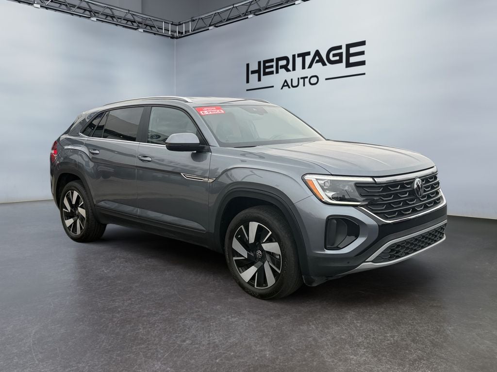 2025 Volkswagen Atlas Cross Sport 2.0T SE w/Technology — 12555 miles — Vernal, UT This 2025 Volkswagen Atlas Cross Sport 2.0T SE w/Technology pairs refined styling with practical capability, featuring a peppy 2.0L 4-cylinder gasoline engine and confident AWD for reliable traction in Vernal, UT conditions. With just 12,555 miles, this low-mileage SUV delivers excellent value and longevity for drivers who want modern features without new-car depreciation. We're offering the best price on this Volkswagen Atlas Cross Sport — a smart buy for budget-conscious shoppers who refuse to compromise on equipment. Comfort and convenience are highlighted by Remote Start for easy climate control, Hands-Free Bluetooth® for safe, seamless calls and audio streaming, and Apple CarPlay to integrate your iPhone for navigation, messaging, and media. Safety features include Forward Collision Warning to help reduce crash risk and a Back-Up Camera for greater visibility when parking or maneuvering. The SE w/Technology trim balances tech-forward amenities with practical utility: spacious cargo capacity, comfortable seating, and a composed ride make it ideal for family trips or daily commuting across Utah's varied terrain. With low mileage, an efficient turbocharged engine, and standard AWD, this Volkswagen Atlas Cross Sport is ready for immediate use. Contact us in Vernal to schedule a test drive and take advantage of the best price on this exceptional 2025 Volkswagen Atlas Cross Sport.